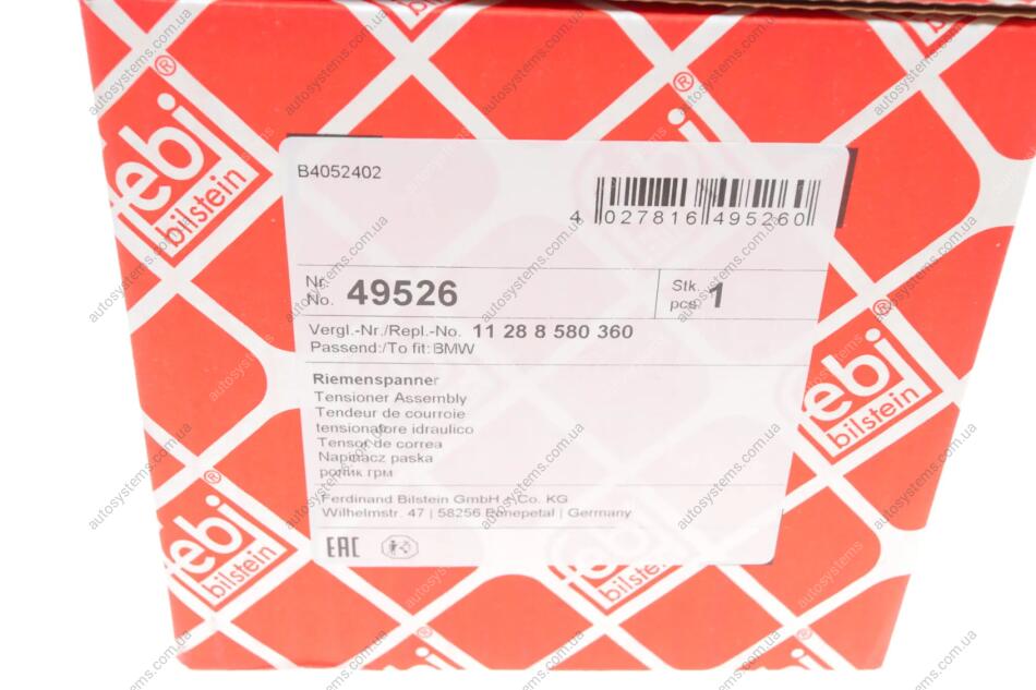 Натяжник ременя генератора BMW 3(F30/F80)/5 (G30/F90)/7 (G11/G12)/X5 (G05/F96) 15-, B38/B46/B48/B58 FEBI BILSTEIN 49526
