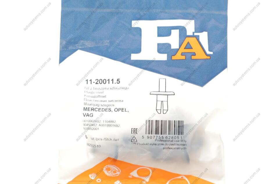 Autosystems є найкращим рішенням для придбання запчастин для вантажівок та інших видів транспорту. Компанія пропонує широкий вибір деталей та вигідні умови замовлення. Распорная заклепка Fischer Automotive One (FA1) 11-20011.5 відповідає оригіналу 0019901692, N10552001 та встановленим стандартам. Підходить на вантажні автомобілі -.