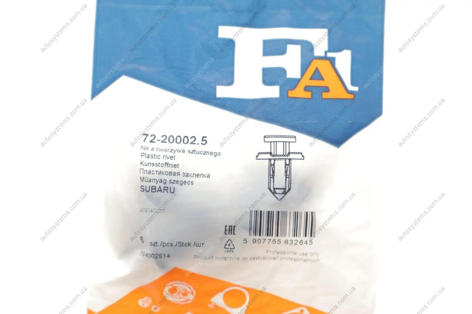 Клипса крепления молдинга Fischer Automotive One (FA1) 72-20002.5