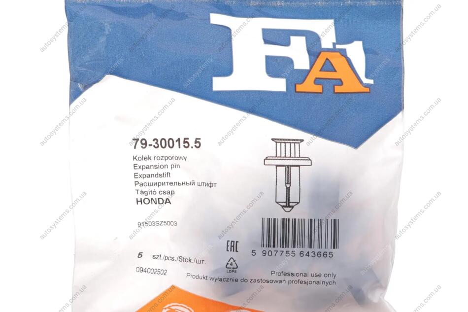 Autosystems є найкращим рішенням для придбання запчастин для вантажівок та інших видів транспорту. Компанія пропонує широкий вибір деталей та вигідні умови замовлення. Набор, распорные/анкерные дюбели Fischer Automotive One (FA1) 79-30015.5 відповідає оригіналу 91503SZ5003 та встановленим стандартам. Підходить на вантажні автомобілі -.