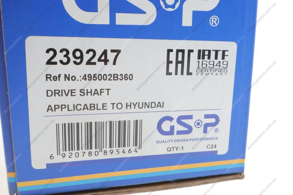 Піввісь (передня) (L) Hyundai Santa Fe 2.7 V6/2.2 CRDi 06-13 (30z/28z/670mm) (+ABS52z) GSP 239247