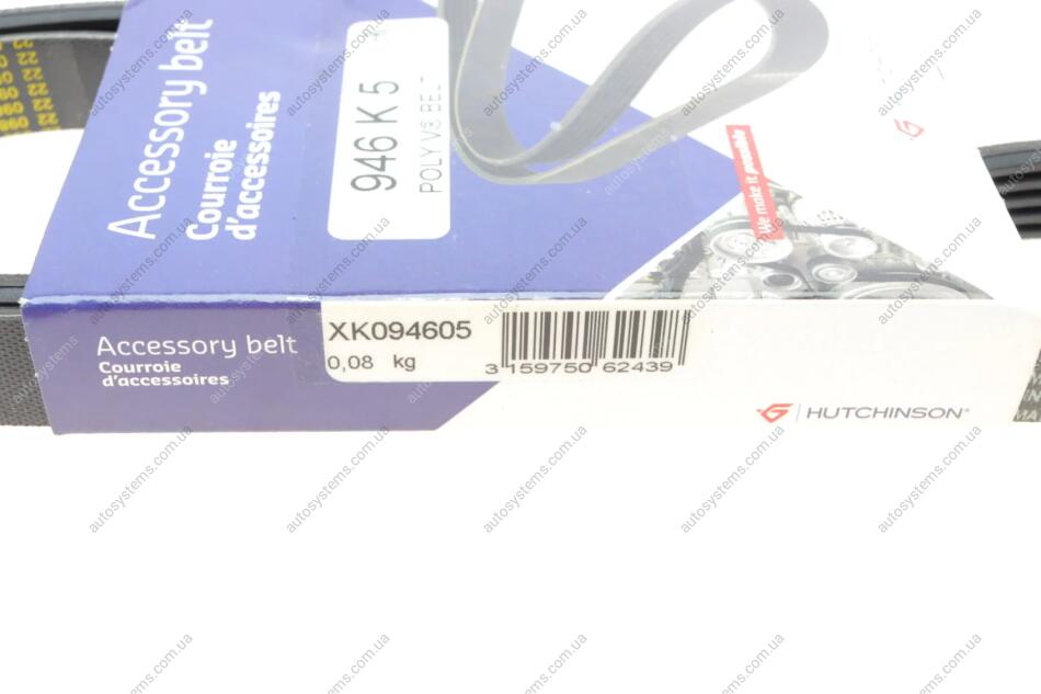 Ремінь генератора BMW 3 (E46) M43 -04/Mitsubishi Lancer IV/V 1.6 16V -96 (5PK946) HUTCHINSON 946 K 5