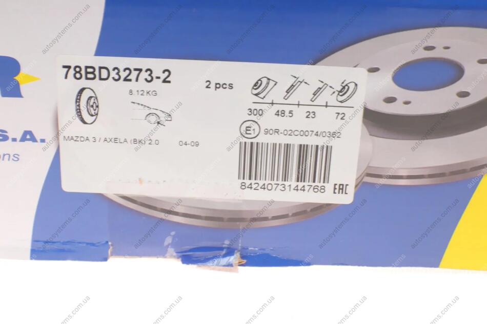 Диск гальмівний (передній) Mazda 3 03-14/Mazda 5 05- (300x25) (з покриттям) (вентильований) ICER 78BD3273-2