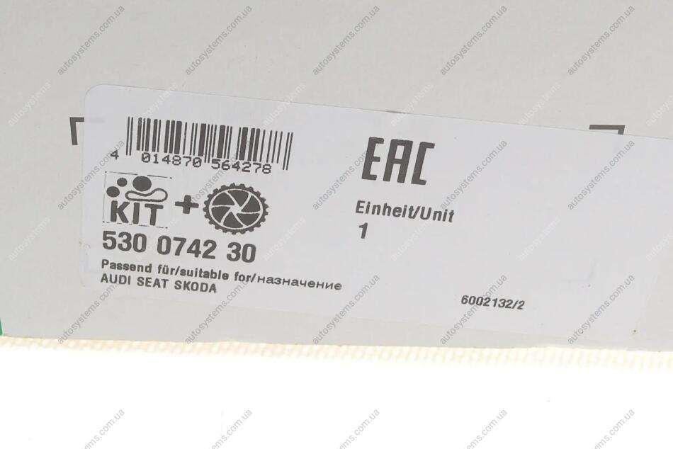 Комплект ГРМ + помпа VW Caddy IV 1.4 TSI/TGI 15-, 81/92kw, CPWA/CZCB INA 530 0742 30