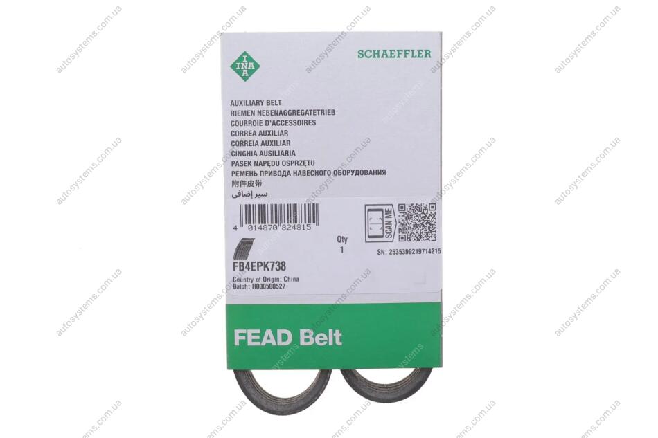 Ремінь генератора Smart Fortwo (451) 1.0/Turbo 07- (+AC) INA FB 4EPK738