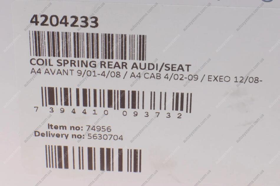 Пружина (задня) Audi A4 1.6-3.0/1.8T/1.9-2.7TDI/2.0FSI/TFSI +quattro 01-08 (унів.) (без спорт.х.ч) LESJOFORS 4204233