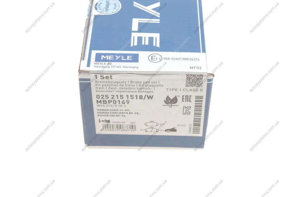 Колодки гальмівні MEYLE 0252151518W