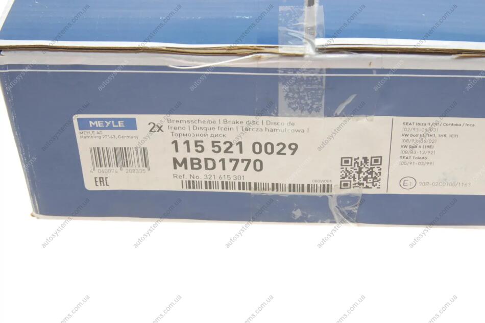 Диск гальмівний (передній) VW Caddy I 82-92 (239x12) MEYLE 115 521 0029