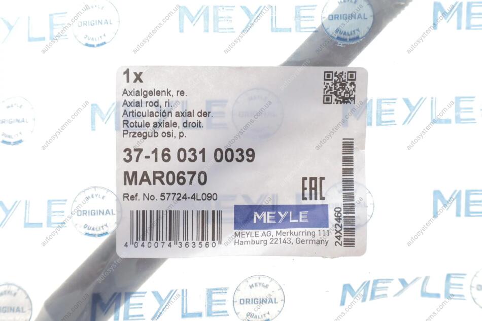 Осевой шарнир, рулевая тяга MEYLE 37-16 031 0039
