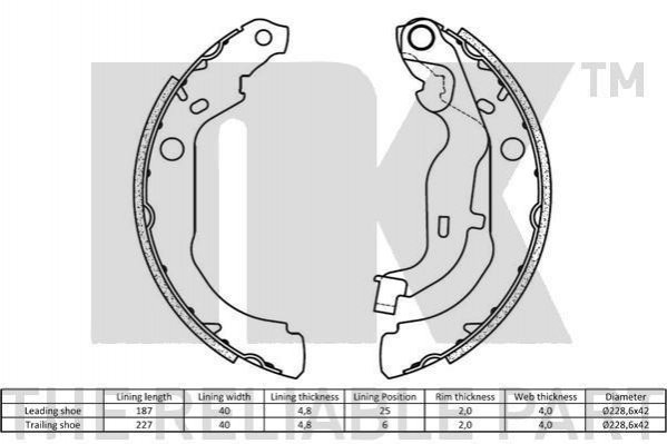 Колодки гальмівні барабанні, комплект NK 2739848