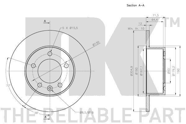 Диск гальмівний невентильований NK 313977