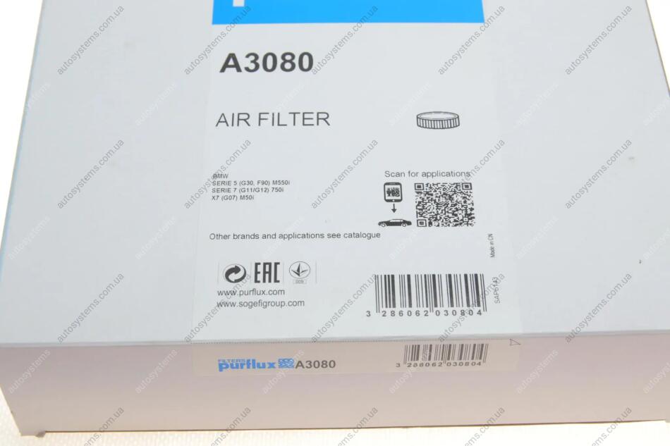 Фільтр повітряний BMW 7 (G11/G12)/X7 (G07) 15- (R) (N63/N74) Purflux A3080
