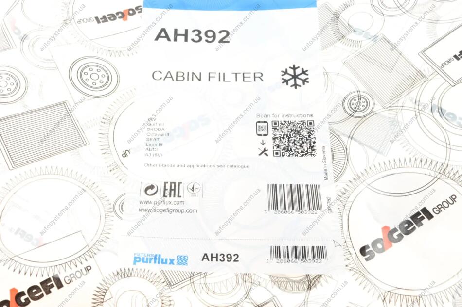Фільтр салону VW Golf 1.2-1.4TSI/1.6-2.0TDI 12- Purflux AH392