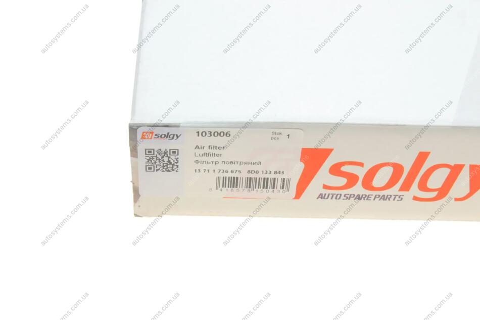 Фільтр повітряний Audi A4/VW Passat 1.8T-1.9TDI 94- Solgy 103006