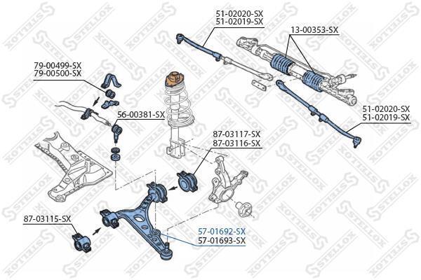 Рычаг подвески передний нижний левый STELLOX 57-01692-SX