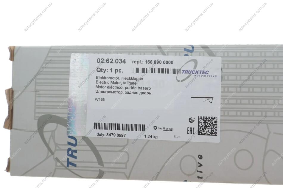 Autosystems є найкращим рішенням для придбання запчастин для вантажівок та інших видів транспорту. Компанія пропонує широкий вибір деталей та вигідні умови замовлення. Амортизатор кришки багажника MB M-class (W166) 11-15 TRUCKTEC 02.62.034 відповідає оригіналу 1668900000, 1668900430, 1668901130 та встановленим стандартам. Підходить на вантажні автомобілі -.