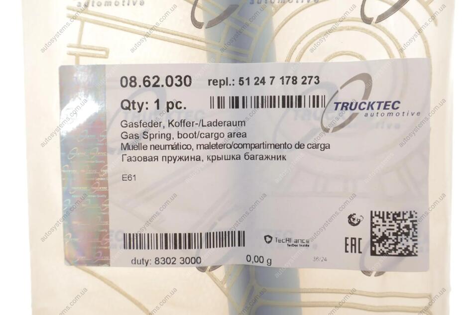 Амортизатор кришки багажника BMW 5 (E61) 04-10 (універсал) TRUCKTEC 08.62.030
