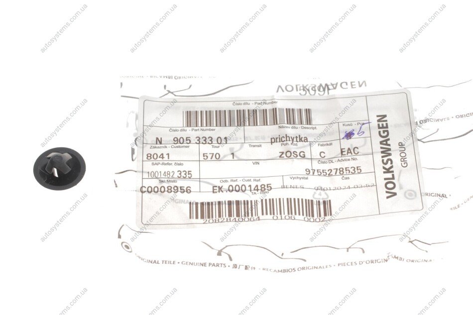 Autosystems є найкращим рішенням для придбання запчастин для вантажівок та інших видів транспорту. Компанія пропонує широкий вибір деталей та вигідні умови замовлення. Кліпса для кріплення VAG N90533301 відповідає оригіналу та встановленим стандартам. Підходить на вантажні автомобілі -.